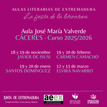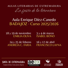 Las Aulas Literarias de Extremadura conforman uno de los programas de encuentros con autor más importantes de nuestro país. Desde que a finales del siglo XX, Ángel Campos Pámpano ideara este modo de acercar la literatura al alumnado de secundaria, así como al público extremeño en general, el conjunto de Aulas Literarias de Extremadura ha acogido a cerca de 800 autores.